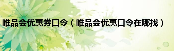 大家好,小晋来为大家解答以下问题,关于唯品会优惠券口令,唯品会优惠口令在哪找很多人还不知道,今天让我们一起来看看吧!