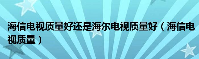 大家好,来宝来为大家解答以下问题,海信电视质量好还是海尔电视质量好,海信电视质量很多人还不知道,今天让我们一起来看看吧!