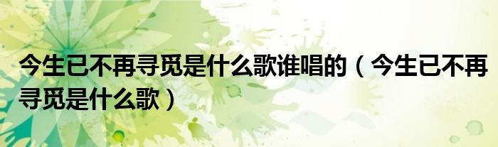 关于今生已不再寻觅是什么歌谁唱的,今生已不再寻觅是什么歌这个很多人还不知道,今天菲菲来为大家解答以上的问题,现在让我们一起来看看吧!