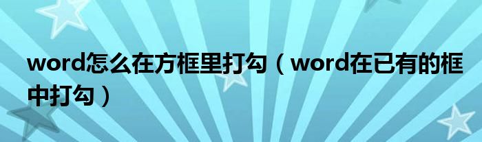 word怎么在方框里打勾(word在已有的框中打勾)