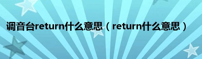 关于调音台return什么意思,return什么意思这个很多人还不知道,今天菲菲来为大家解答以上的问题,现在让我们一起来看看吧!
