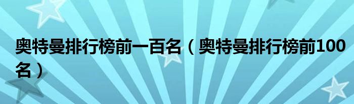 奥特曼排行榜前一百名(奥特曼排行榜前100名)