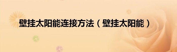 大家好,来宝来为大家解答以下问题,壁挂太阳能连接方法,壁挂太阳能很多人还不知道,今天让我们一起来看看吧!