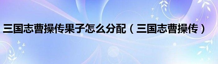 大家好,来宝来为大家解答以下问题,三国志曹操传果子怎么分配,三国志曹操传很多人还不知道,今天让我们一起来看看吧!