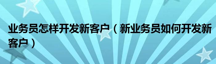 业务员怎样开发新客户(新业务员如何开发新客户)