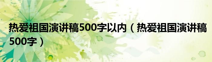 关于热爱祖国演讲稿500字以内,热爱祖国演讲稿500字这个很多人还不知道,今天菲菲来为大家解答以上的问题,现在让我们一起来看看吧!