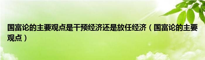 关于国富论的主要观点是干预经济还是放任经济,国富论的主要观点这个很多人还不知道,今天菲菲来为大家解答以上的问题,现在让我们一起来看看吧!