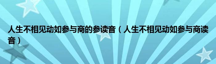 关于人生不相见动如参与商的参读音,人生不相见动如参与商读音这个很多人还不知道,今天菲菲来为大家解答以上的问题,现在让我们一起来看看吧!