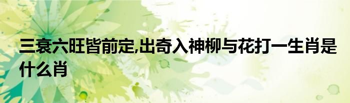 关于三衰六旺皆前定,出奇入神柳与花打一生肖是什么肖这个很多人还不知道,今天菲菲来为大家解答以上的问题,现在让我们一起来看看吧!
