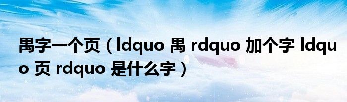 关于禺字一个页,ldquo 禺 rdquo 加个字 ldquo 页 rdquo 是什么字这个很多人还不知道,今天菲菲来为大家解答以上的问题,现在让我们一起来看看吧!