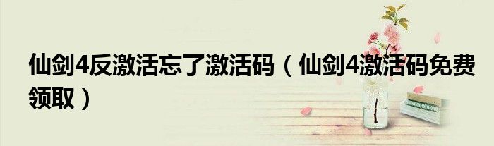 关于仙剑4反激活忘了激活码,仙剑4激活码免费领取这个很多人还不知道,今天菲菲来为大家解答以上的问题,现在让我们一起来看看吧!