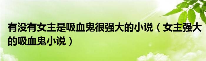 关于有没有女主是吸血鬼很强大的小说,女主强大的吸血鬼小说这个很多人还不知道,今天菲菲来为大家解答以上的问题,现在让我们一起来看看吧!