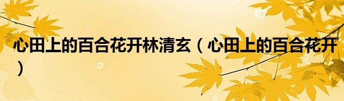 关于心田上的百合花开林清玄,心田上的百合花开这个很多人还不知道,今天菲菲来为大家解答以上的问题,现在让我们一起来看看吧!