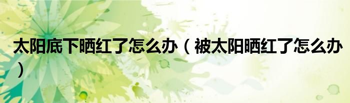 关于太阳底下晒红了怎么办,被太阳晒红了怎么办这个很多人还不知道,今天菲菲来为大家解答以上的问题,现在让我们一起来看看吧!