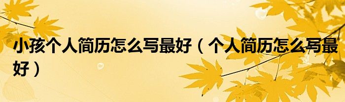 关于小孩个人简历怎么写最好,个人简历怎么写最好这个很多人还不知道,今天菲菲来为大家解答以上的问题,现在让我们一起来看看吧!