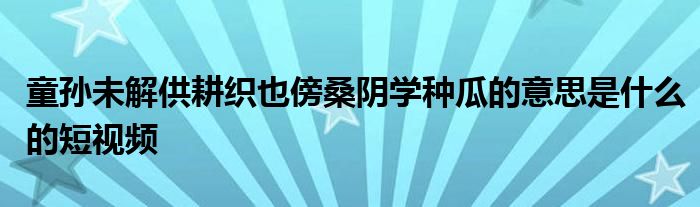 关于童孙未解供耕织也傍桑阴学种瓜的意思是什么的短视频这个很多人还不知道,今天菲菲来为大家解答以上的问题,现在让我们一起来看看吧!