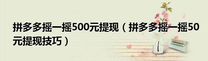 拼多多摇一摇500元提现(拼多多摇一摇50元提现技巧)