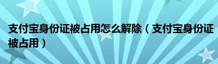 大家好,来宝来为大家解答以下问题,支付宝身份证被占用怎么解除,支付宝身份证被占用很多人还不知道,今天让我们一起来看看吧!