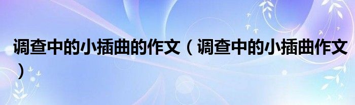 调查中的小插曲的作文,调查中的小插曲作文这个很多人还不知道,小飞来为大家解答以上的问题。现在让我们一起来看看吧!