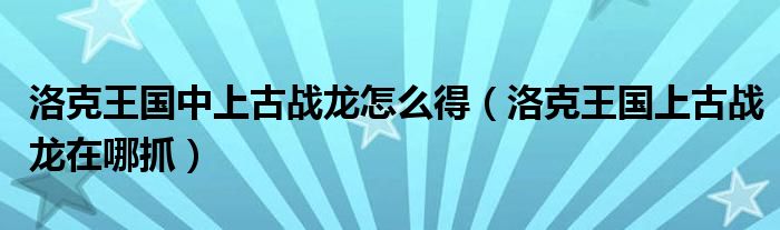 最佳答案关于洛克王国中上古战龙怎么得,洛克王国上古战龙在哪抓这个很多人还不知道,今天菲菲来为大家解答以上的问题,现在让我们一起来看看吧!1、要VIP在龙脉之炎龙脉之炎走法:到龙之秘境——点祭台上最中间圆的东西,进入左边草丛来到龙须小径——往上走来到龙珠禁地——点一下那个水晶球右下方的太阳...