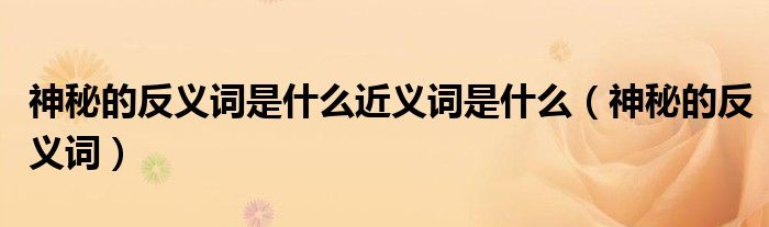 大家好,小晋来为大家解答以下问题,关于神秘的反义词是什么近义词是什么,神秘的反义词很多人还不知道,今天让我们一起来看看吧!