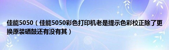 大家好,小常来为大家解答以上问题。佳能5050,佳能5050彩色打印机老是提示色彩校正除了更换原装硒鼓还有没有其很多人还不知道,现在让我们一起来看看吧!