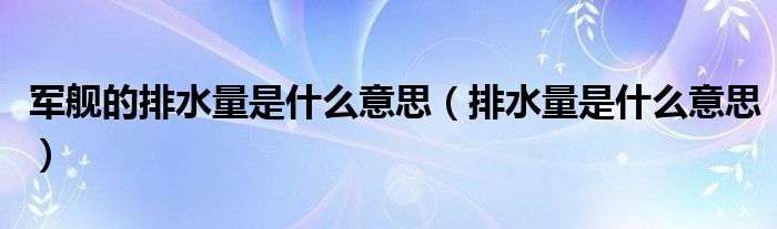 关于军舰的排水量是什么意思,排水量是什么意思这个很多人还不知道,今天菲菲来为大家解答以上的问题,现在让我们一起来看看吧!