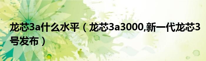 大家好,小常来为大家解答以上问题。龙芯3a什么水平,龙芯3a3000,新一代龙芯3号发布很多人还不知道,现在让我们一起来看看吧!