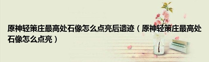 大家好,小飞来为大家解答以上问题,原神轻策庄最高处石像怎么点亮后遗迹,原神轻策庄最高处石像怎么点亮很多人还不知道,现在让我们一起来看看吧!