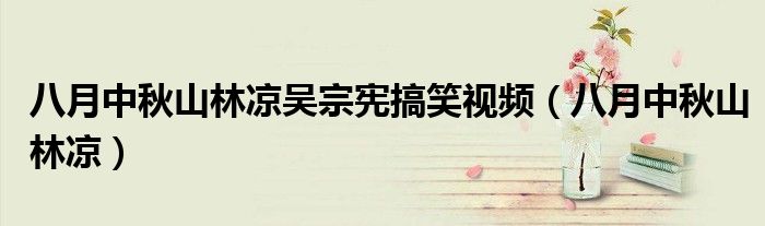 八月中秋山林凉吴宗宪搞笑视频,八月中秋山林凉这个很多人还不知道,小飞来为大家解答以上的问题。现在让我们一起来看看吧!