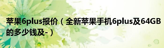 4,全新苹果手机6plus 64GB的多少钱 - :苹果6 plus 64G的官网报价:6088:;京东上64G金色版报价:5788以下各个容量版本的官网报价供参考:苹果6官网报价:16G:4488 , 64G:5288苹果6 plus官网报价:16G:5288, 64G:6088苹果6S官网报价:16G:5288 , 64G:6088苹果6S plus官网报价:16G:6088 ,64G:6888 ,128G:7788这些是官网的报价,非官网的报价会在这些报价的基础上便宜200-600左右。好用的话望采纳~!
