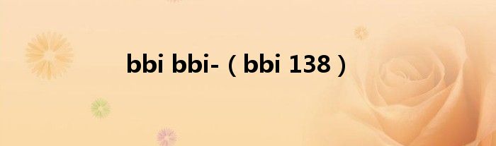 bbi bbi-,bbi 138这个很多人还不知道,小飞来为大家解答以上的问题。现在让我们一起来看看吧!
