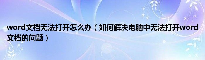 大家好,今天小悦来为大家解答以上问题。word文档无法打开怎么办,如何解决电脑中无法打开word文档的问题很多人还不知道,现在让我们一起来看看吧!