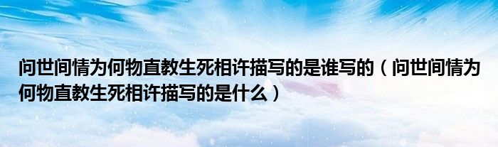 大家好,小飞来为大家解答以上的问题。问世间情为何物直教生死相许描写的是谁写的,问世间情为何物直教生死相许描写的是什么这个很多人还不知道,现在让我们一起来看看吧!