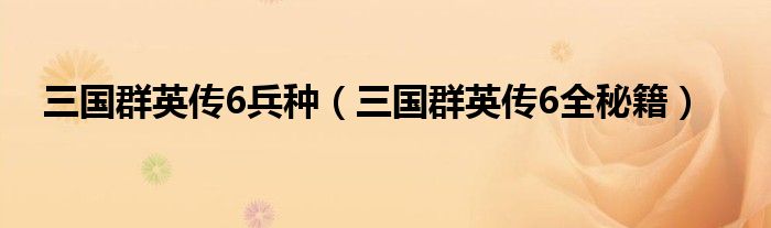 大家好,小飞来为大家解答以上的问题。三国群英传6兵种,三国群英传6全秘籍这个很多人还不知道,现在让我们一起来看看吧!