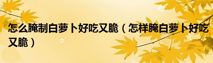 怎么腌制白萝卜好吃又脆(怎样腌白萝卜好吃又脆)