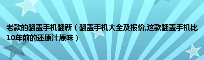大家好,小常来为大家解答以上问题。老款的翻盖手机翻新,翻盖手机大全及报价,这款翻盖手机比10年前的还原汁原味很多人还不知道,现在让我们一起来看看吧!