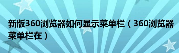 新版360浏览器如何显示菜单栏(360浏览器菜单栏在)