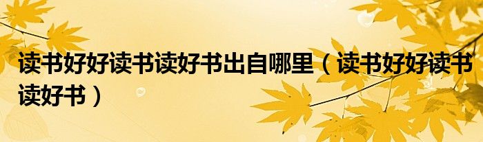 关于读书好好读书读好书出自哪里,读书好好读书读好书这个很多人还不知道,今天菲菲来为大家解答以上的问题,现在让我们一起来看看吧!