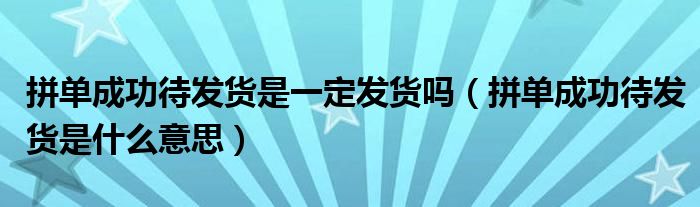 大家好,跳跳为你解答以上问题。拼单成功待发货是一定发货吗,拼单成功待发货是什么意思这个问题很多人还不知道,现在让我们一起来看看吧!
