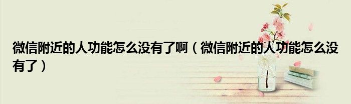 大家好,小晋来为大家解答以下问题,关于微信附近的人功能怎么没有了啊,微信附近的人功能怎么没有了很多人还不知道,今天让我们一起来看看吧!