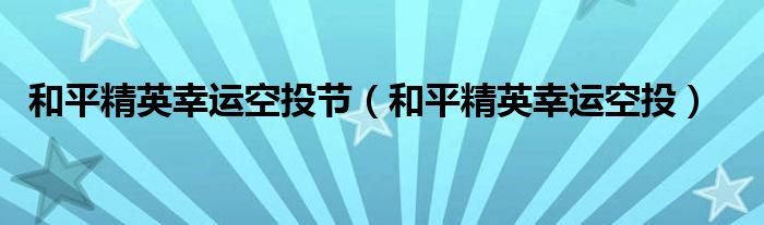 大家好,慧慧来为大家解答以上问题,和平精英幸运空投节,和平精英幸运空投很多人还不知道,现在让我们一起来看看吧!