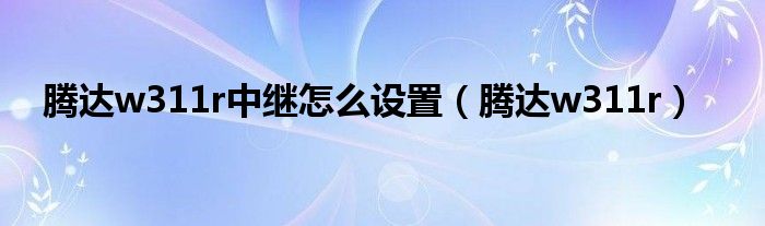 大家好,慧慧来为大家解答以上问题,腾达w311r中继怎么设置,腾达w311r很多人还不知道,现在让我们一起来看看吧!