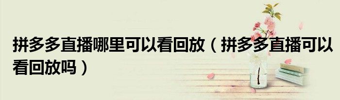 大家好,跳跳为你解答以上问题。拼多多直播哪里可以看回放,拼多多直播可以看回放吗这个问题很多人还不知道,现在让我们一起来看看吧!