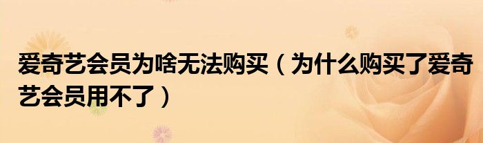 大家好,跳跳为你解答以上问题。爱奇艺会员为啥无法购买,为什么购买了爱奇艺会员用不了这个问题很多人还不知道,现在让我们一起来看看吧!