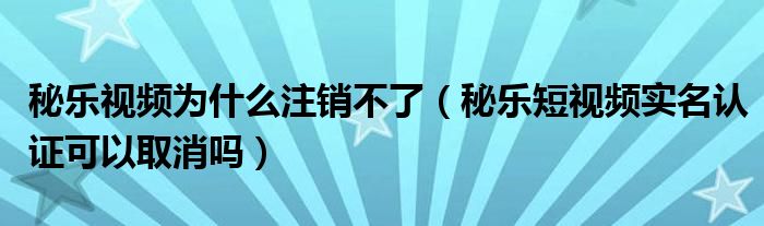 大家好,跳跳为你解答以上问题。秘乐视频为什么注销不了,秘乐短视频实名认证可以取消吗这个问题很多人还不知道,现在让我们一起来看看吧!