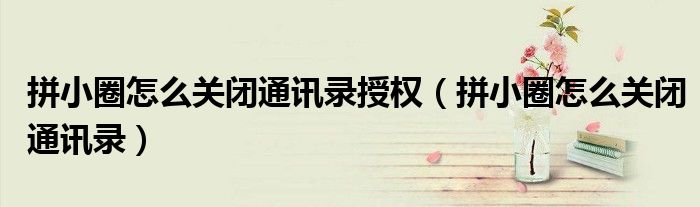 大家好,跳跳为你解答以上问题。拼小圈怎么关闭通讯录授权,拼小圈怎么关闭通讯录这个问题很多人还不知道,现在让我们一起来看看吧!