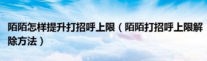 陌陌怎样提升打招呼上限(陌陌打招呼上限解除方法)