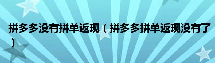 拼多多没有拼单返现(拼多多拼单返现没有了)