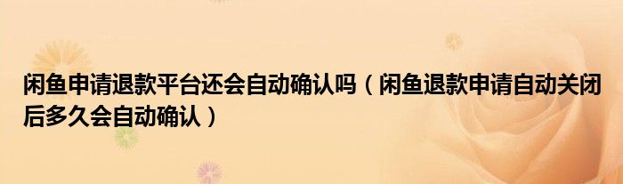 闲鱼申请退款平台还会自动确认吗(闲鱼退款申请自动关闭后多久会自动确认)